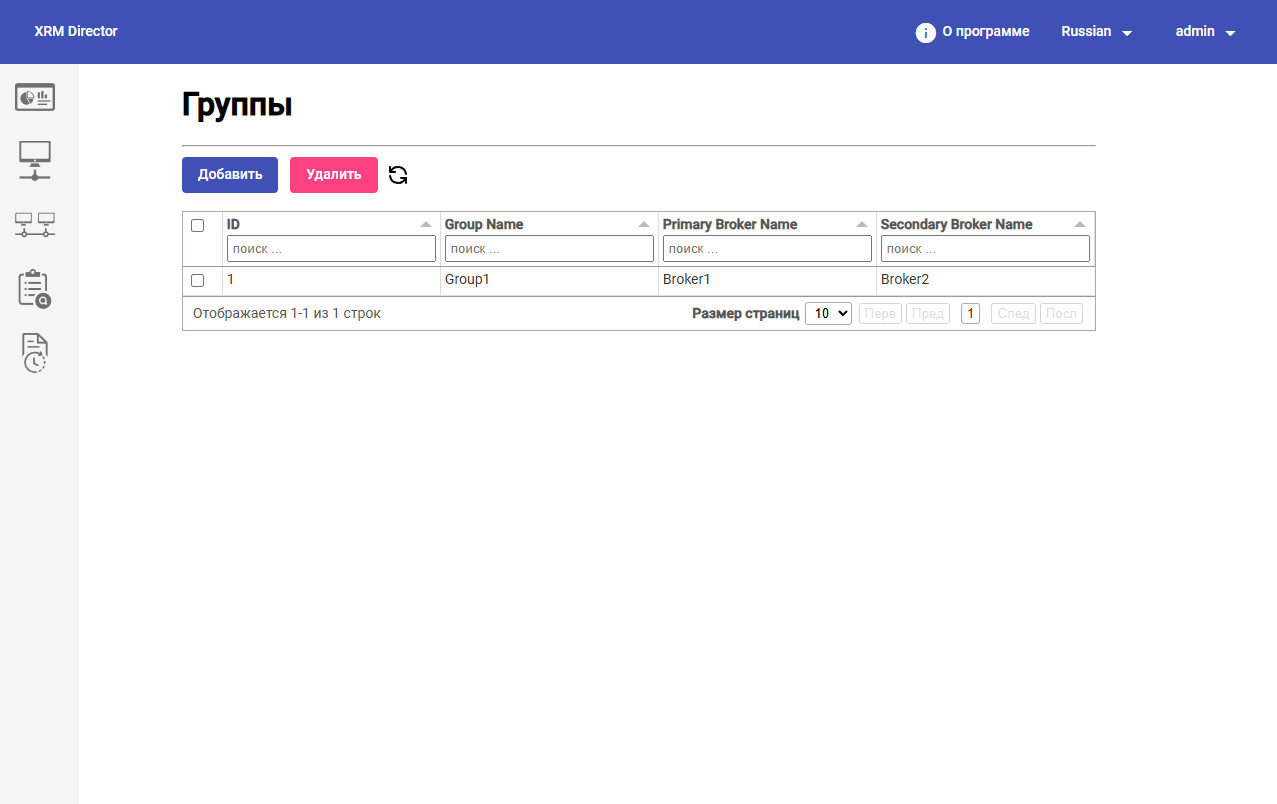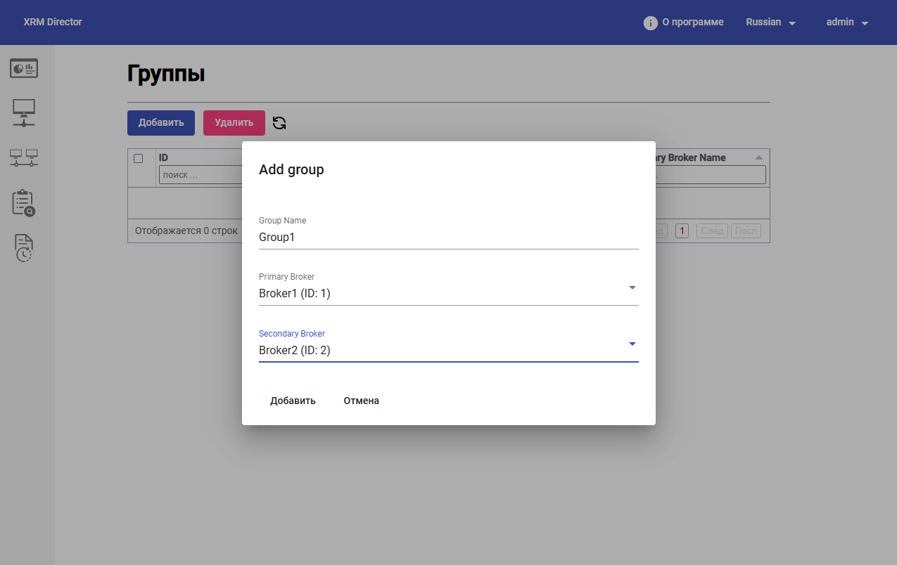 Для создания группы брокеров администратор открывает раздел `Группы` в интерфейсе XRM Director.